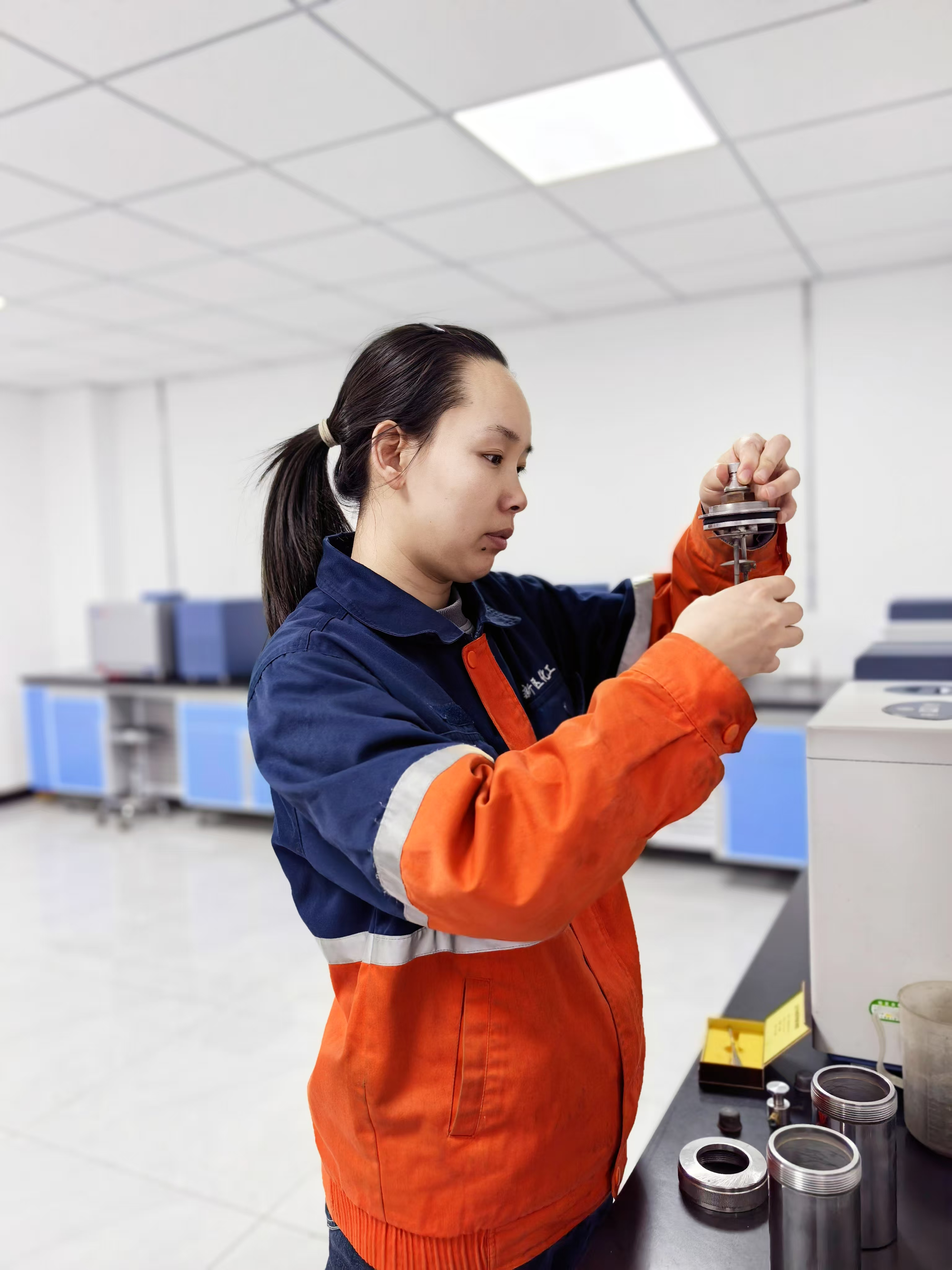 夜間22時(shí)40分,馮浩婷已來(lái)到化驗(yàn)室,開(kāi)始檢測(cè)當(dāng)天的第一份鍋爐水樣。鍋爐水質(zhì)量直接影響鍋爐運(yùn)行,水質(zhì)不佳易引發(fā)結(jié)垢、腐蝕,降低供熱供電效率,甚至造成安全事故。馮浩婷小心量取適量水樣,加入化學(xué)試劑后放入檢測(cè)儀器,眼睛緊緊盯著屏幕。很快,初步檢測(cè)顯示水樣硬度略超正常范圍,馮浩婷深知問(wèn)題嚴(yán)重性,迅速重新采樣進(jìn)行二次檢測(cè)。近兩個(gè)小時(shí)里,她專注重復(fù)檢測(cè)步驟,不放過(guò)任何細(xì)節(jié),最終確定準(zhǔn)確數(shù)據(jù)并上報(bào)。
