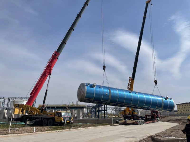 近日,疫情防控形勢復雜嚴峻,這對于物流園貨場項目建設來說,壓力極大。設備到貨時間延長,施工工地人員密集,流動性大,項目建設面臨材料、設備、人員等多重壓力?;ど藤Q(mào)公司多方協(xié)調(diào),克服種種困難,終于于11月15日,硝酸儲罐順利運抵物流園貨場。檢查吊車司機、運輸司機等“兩碼”正常并按要求報備后,物流園貨場立即安排,各種機械輪番作業(yè),公司職工和施工單位人員在工地上揮汗奮戰(zhàn),整個施工現(xiàn)場繁忙而有序,經(jīng)過了十二個小時的奮戰(zhàn),克服了吊裝過程中種種困難。在公司領導、項目部技術人員的協(xié)同下,物流園貨場罐區(qū)主體工程之一——直徑4米、高度近24米、吊裝總重量近30噸的硝酸儲罐順利吊裝并精準落位。截止發(fā)稿,新安裝硝酸儲罐已進行罐頂蓋板和防護欄桿焊接作業(yè),預計月底,硝酸儲罐所有輔助設施將全部完成。