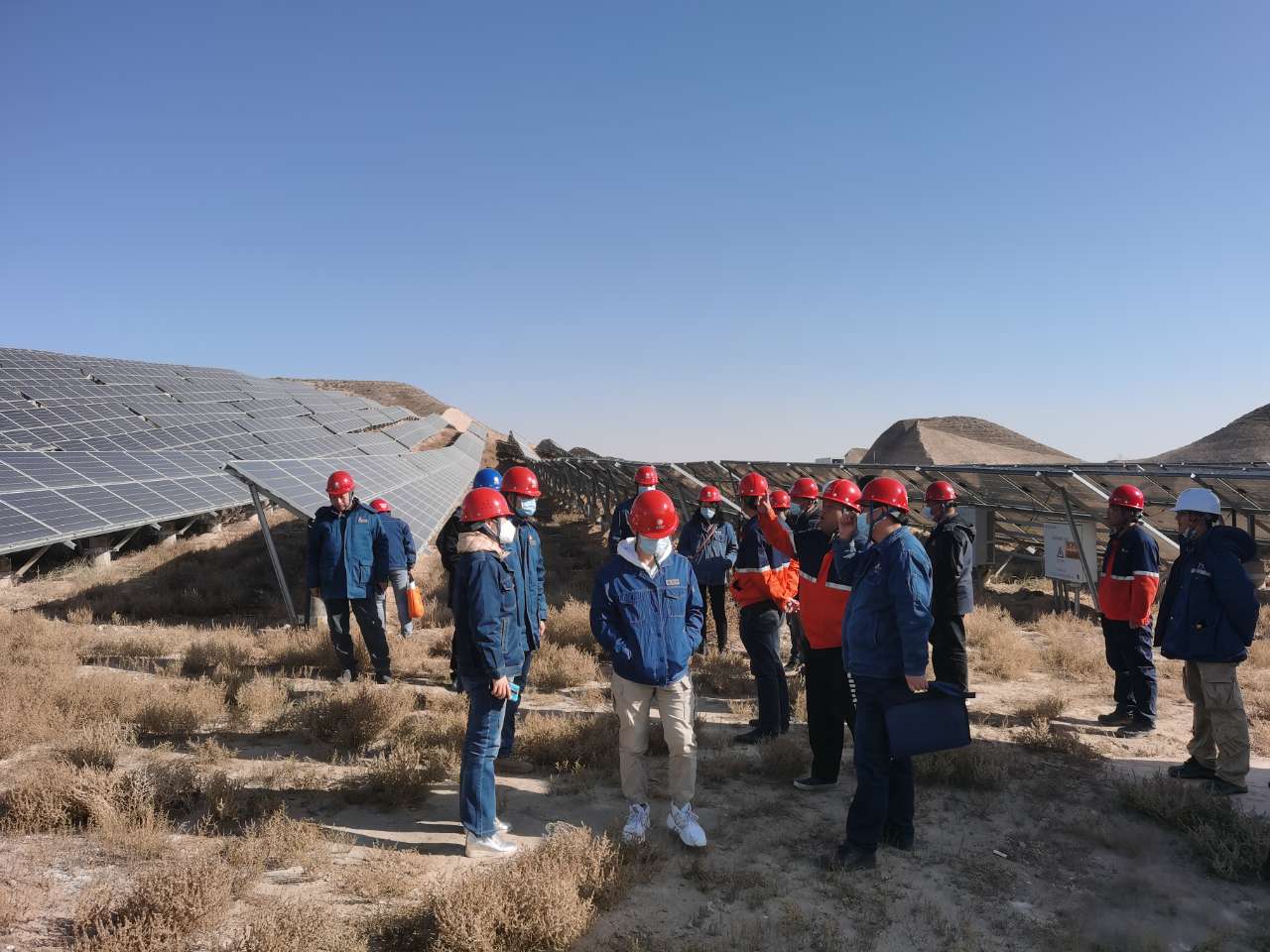 專精特新公司首先向蘭州供電公司和新區(qū)供電公司匯報該項目建設(shè)情況及目前手續(xù)辦理情況,并就相關(guān)問題做出解答。隨后,帶領(lǐng)蘭州供電公司及新區(qū)供電公司一行人員前往10MW光伏站場,國網(wǎng)專業(yè)人員對設(shè)備參數(shù)、線路配置、信號傳輸及場站安全等各方面進行了詳細的詢問,并對現(xiàn)場設(shè)備及準備運行情況進行了全面了解,就后期運行提出了指導(dǎo)意見。