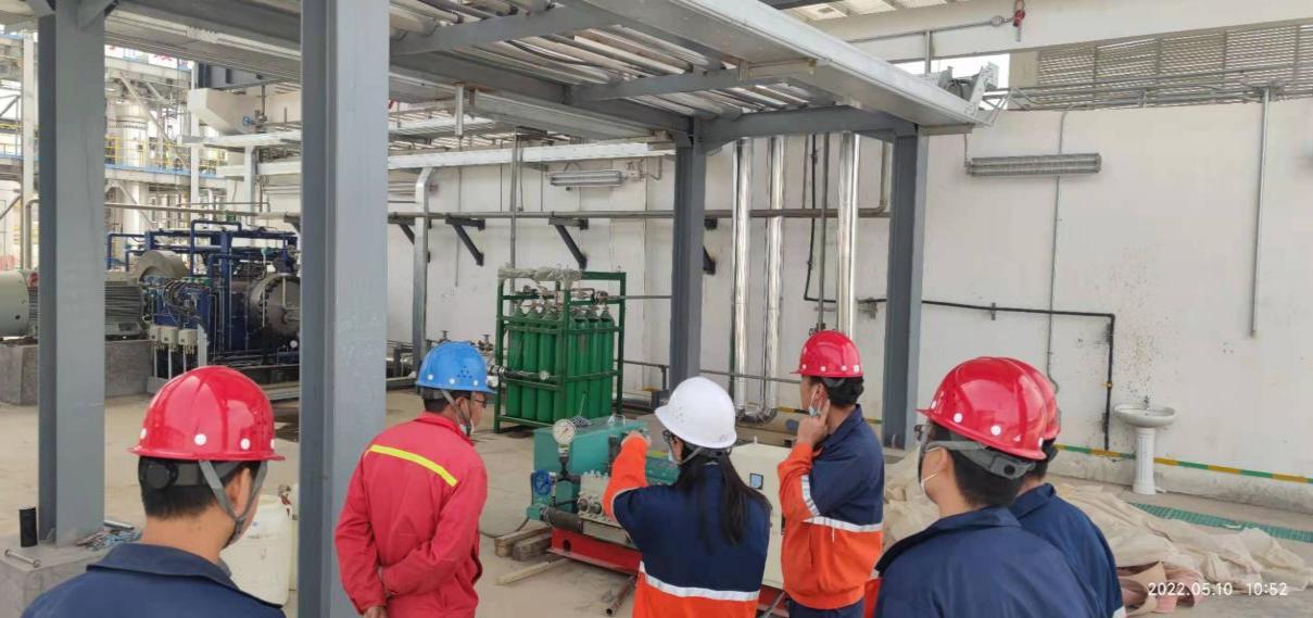 2022年5月10日,液態(tài)太陽合成示范工程電解水制氫裝置氣體純化項目(以下簡稱純化項目)高壓管線試壓工作已順利完成,助推純化項目更快投入使用。