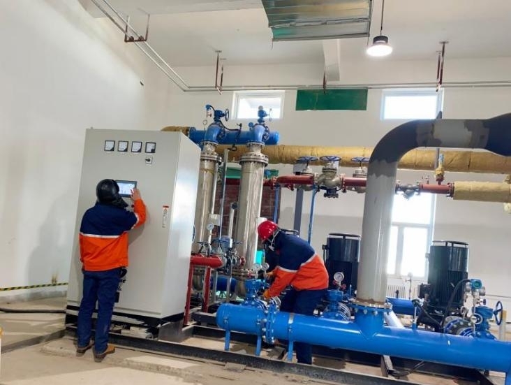 (公輔班組進(jìn)行換熱機(jī)組溫度調(diào)試)