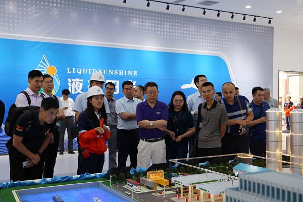 2020年7月19-21日,中科院大連化學(xué)物理研究所李燦院士帶領(lǐng)英國BP公司、榆林碳?xì)溲芯吭汗煞萦邢薰镜?3家單位30多名領(lǐng)導(dǎo)專家在新區(qū)科技發(fā)展局領(lǐng)導(dǎo)的陪同下,到蘭州新區(qū)綠色化工園區(qū)考察蘭州新區(qū)石投集團建設(shè)、試車的液態(tài)太陽燃料合成項目——二氧化碳加氫合成甲醇中試和示范工程項目。