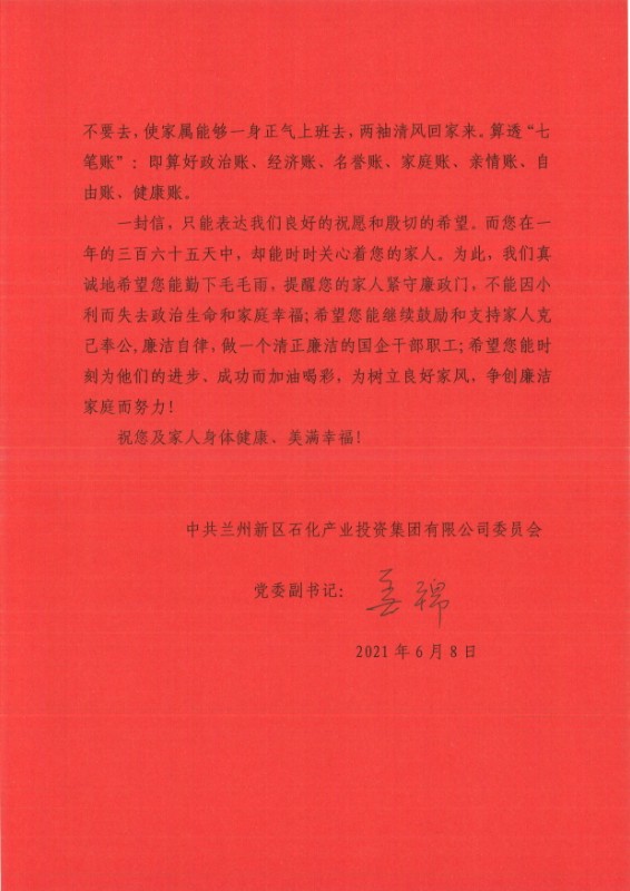 【廉政家書】致廣大干部職工家屬的一封信!