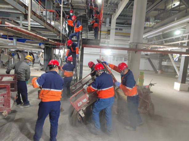 當(dāng)天9時(shí),56名黨員、積極分子及共青團(tuán)員穿戴好勞保用品,準(zhǔn)備好勞動(dòng)工具,在化工熱電公司黨支部支委班子成員帶頭下,大家自領(lǐng)任務(wù),分工明確,協(xié)作有序?;顒?dòng)現(xiàn)場(chǎng),大家汗流浹背,臉上沾滿了灰土,但是為按時(shí)按量完成保供任務(wù),大家克服天氣炎熱等不利因素,一桶一桶的將底料送入爐膛,用“接力賽”的方式將鍋爐房點(diǎn)亮。